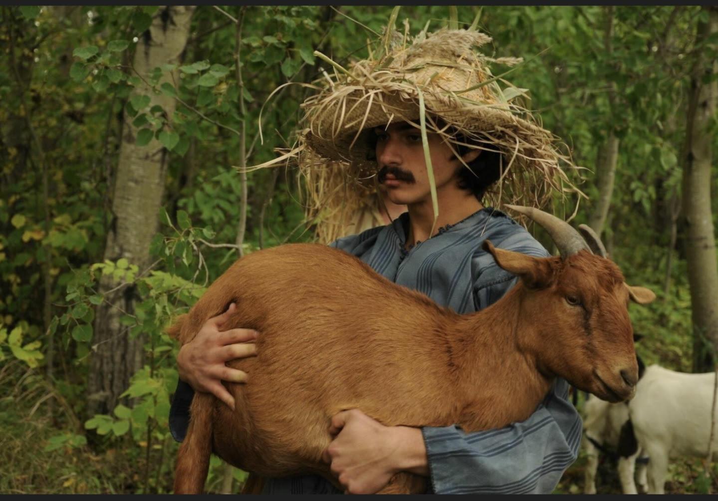 The Golden Boy is Winnipeg’s most famous top. The statue’s homoerotic qualities are so overt that it’s easy to see it as a knowing wink to the queer community. This is the plausible-if-revisionist history suggested in Purple City, a new short film by Noam Gonick and Michael Walker. Modelled after the Greek god Hermes, the statue that adorns the dome of the Manitoba Legislative Building is the symbolic centre of the film, which stages episodes from the city’s queer and occultist mythology. There’s an apt symmetry to Purple City which both begins and ends with Walker, who appears throughout the film, roaming the steps of the Legislature donning a very dark academia look. In between, are scenes from a hookup, an acid trip, goat herders who encounter an oracle in the forest, and some territorial hustlers. At one point Walker, bathed in a red glow, addresses the viewer directly, coyly offering a history lesson in the statue’s provenance which culminates in a sage reminder that “Paris aint Winnipeg y’all, but they both got a river named Seine.”