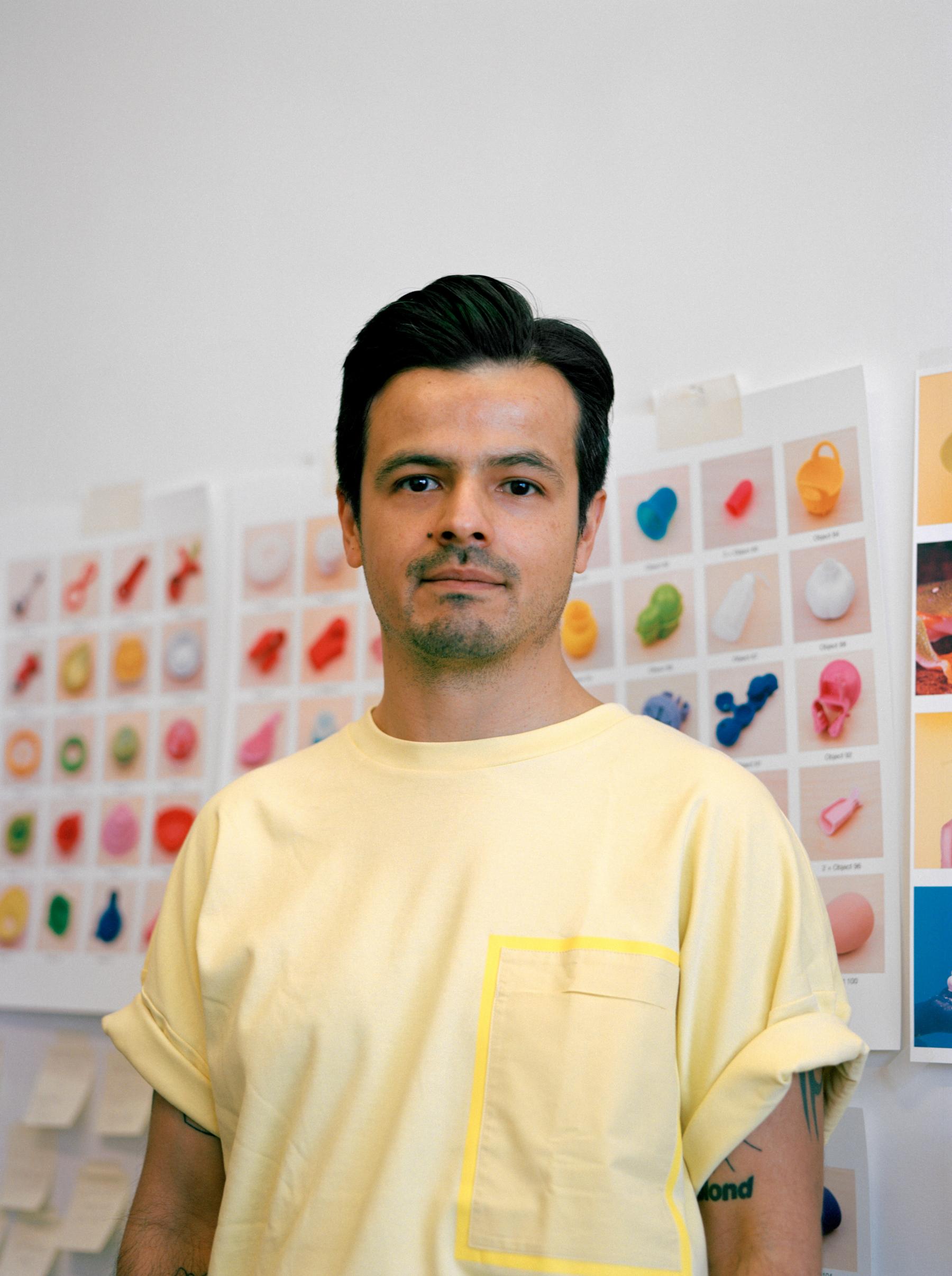 Juan Ortiz-Apuy’s work is rooted in sculpture and installation. He works with everyday household objects and brings them into the realm of the uncanny, creating forms that are almost irresistible to touch. His pieces include custom-made ceramics, oversized plush spray bottles, large pieces of minimalist furniture used in dysfunctional ways, video works rooted in ASMR, digital collages and more. The artist speaks about his exhibition-making practice as an immersive experience. His study of architecture prior to sculpture allows him to think of the unique qualities of each space and how a visitor might move through the path that he sets. He creates an environment that rewards curiosity, and as he describes, leaves little gifts for the viewer that can only be found if they spend enough time in his world.
