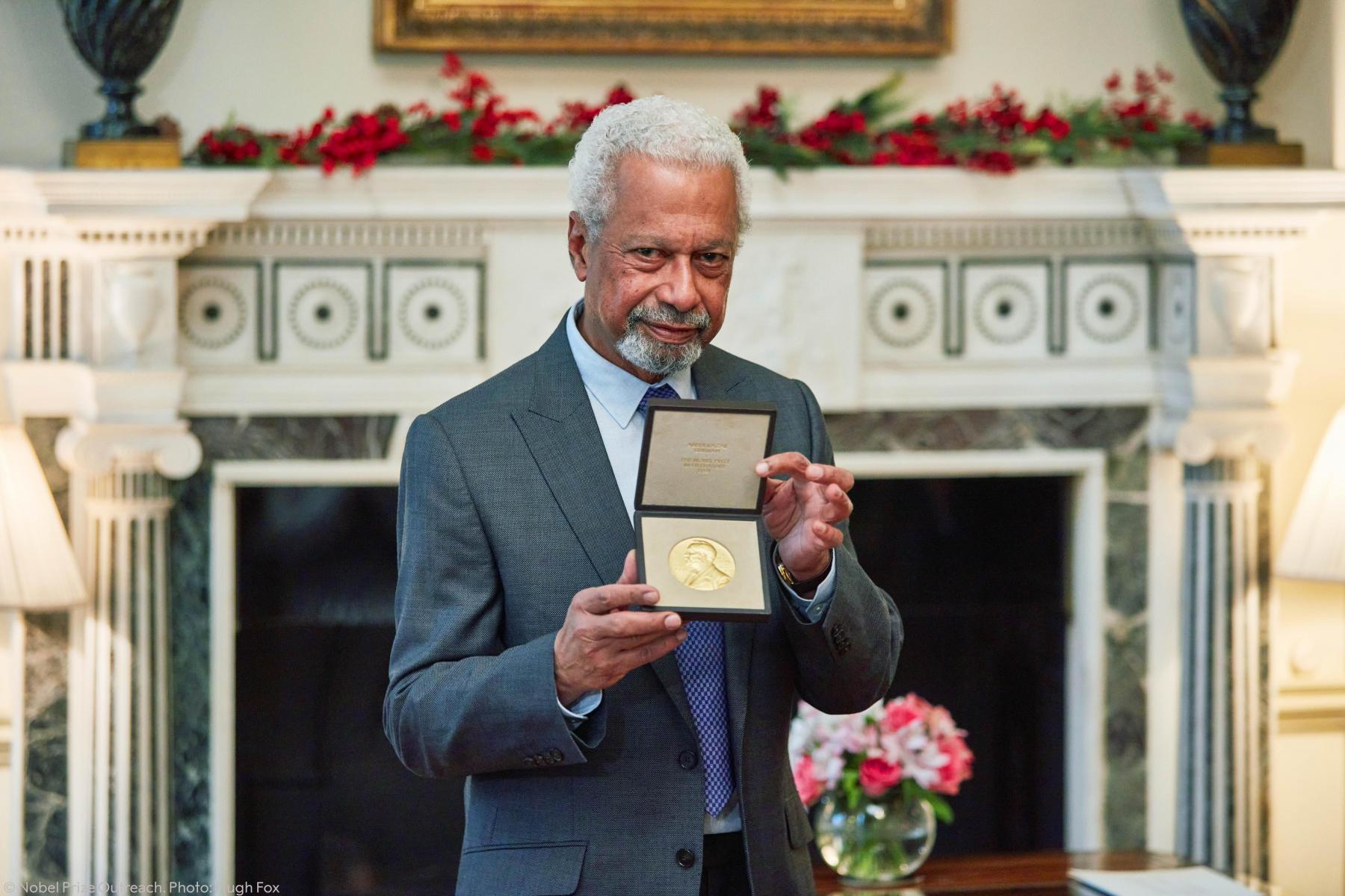 2021 literature laureate Abdulrazak Gurnah just received his Nobel Prize medal and diploma in London, United Kingdom. Image sourced from Nobel Prize Twitter.