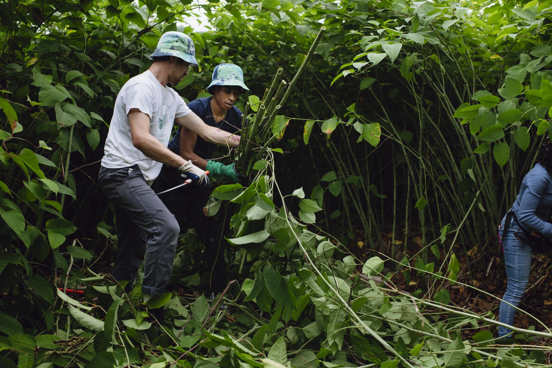 “Biocultural restoration” is a term Furstnau uses to define a framework of his approach to cultivate human relationships with the land as a way to restore ecosystems. As individuals interact with the knotweed they become more familiar with it, the land, and the people with whom they are working. Fursnau explains why he and his team are invested in teaching the community members how to remove and use knotweed to build structures. “People come and they get to know the plant and it’s less of a boogeyman now, because you’ve dealt with it, and you’re also connecting to a place… invested in the other people and the place, and you can pass down that connection to people and the place…And then all of a sudden the whole ecosystem, including the humans are resilient.” Invasive species are not a “problem to be solved,” but an invitation to look differently.