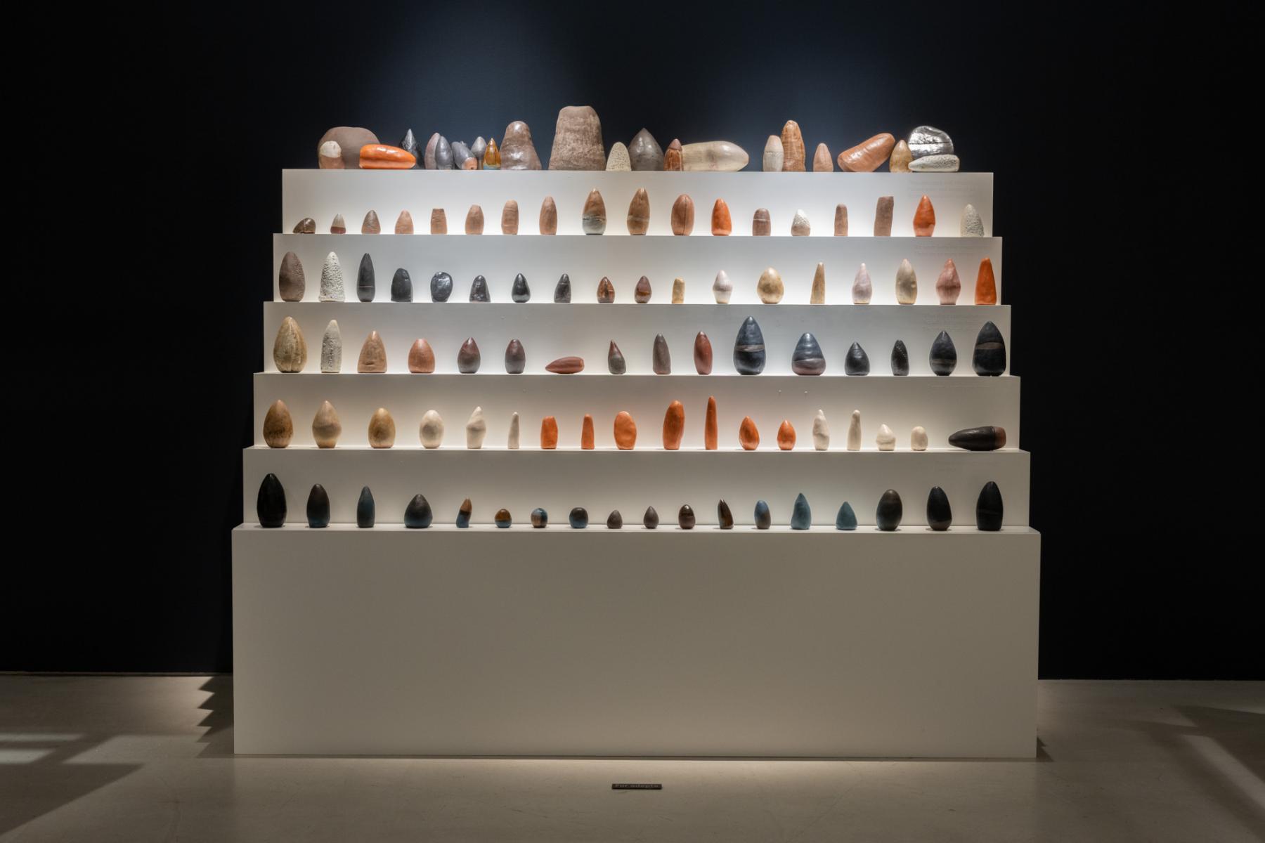 Sameer Farooq, Ascension (Omphalos), 2021. Fired clay, stepped display. Courtesy of the artist. Photo: Darren Rigo.
