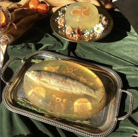 Aspics memorably burst into Canadian contemporary art discourse in the fall of 2019, when Canadian arts media were briefly fixated on a galling story detailing how Sharona Franklin, a Vancouver-based, disabled artist known for making ornate aspics, had been robbed of her artwork by the multinational designer brand Gucci for an ad campaign.
