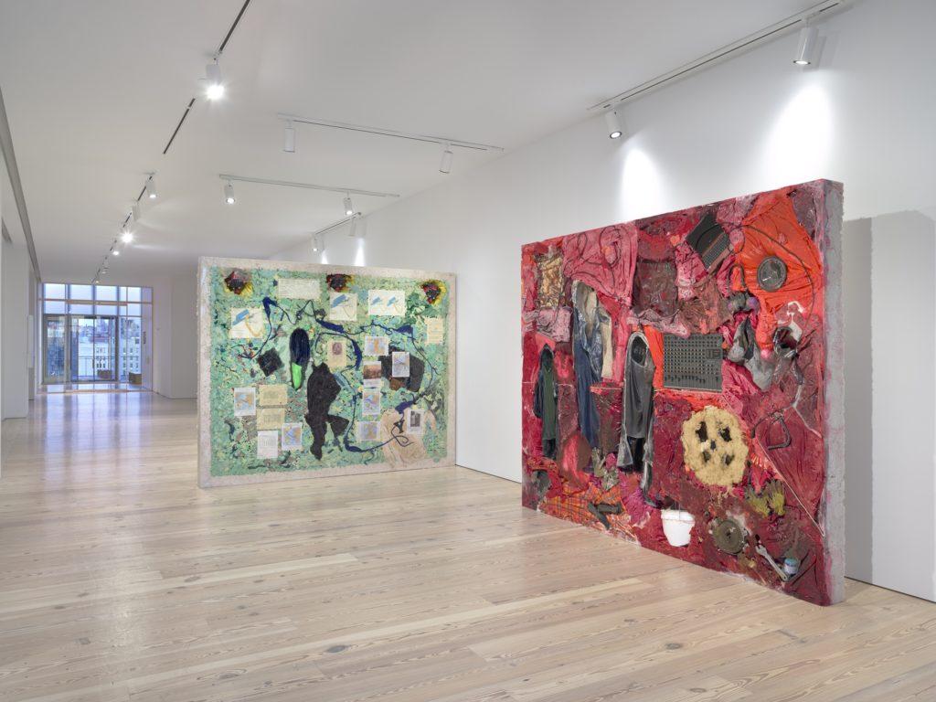 On the left, Kevin Beasley’s Campus (2018); on the right, The Acquisition, (2018). Courtesy Casey Kaplan,