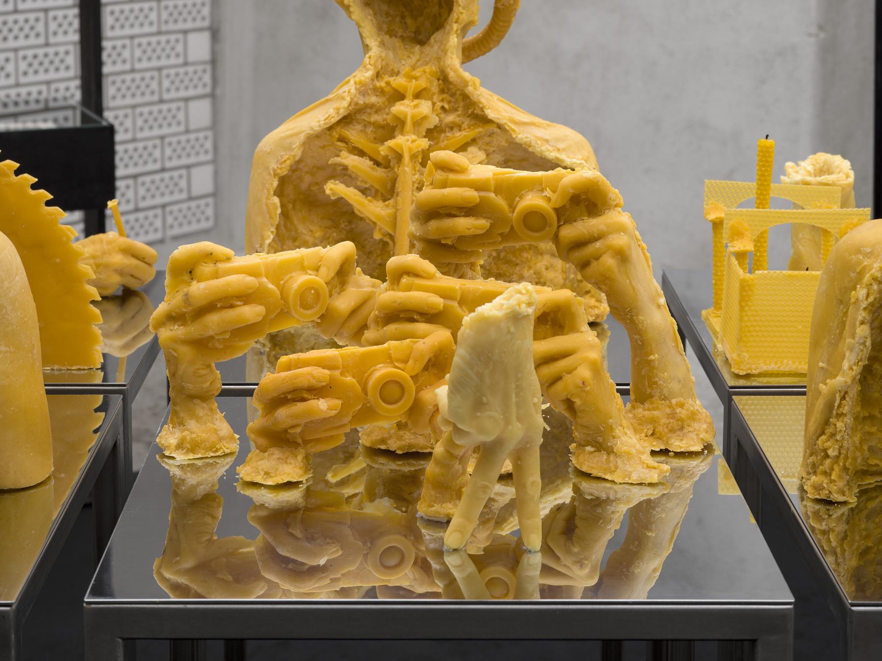 I was particularly drawn to your beeswax sculptures. What led you to this material? And more broadly, what guides your material choices?