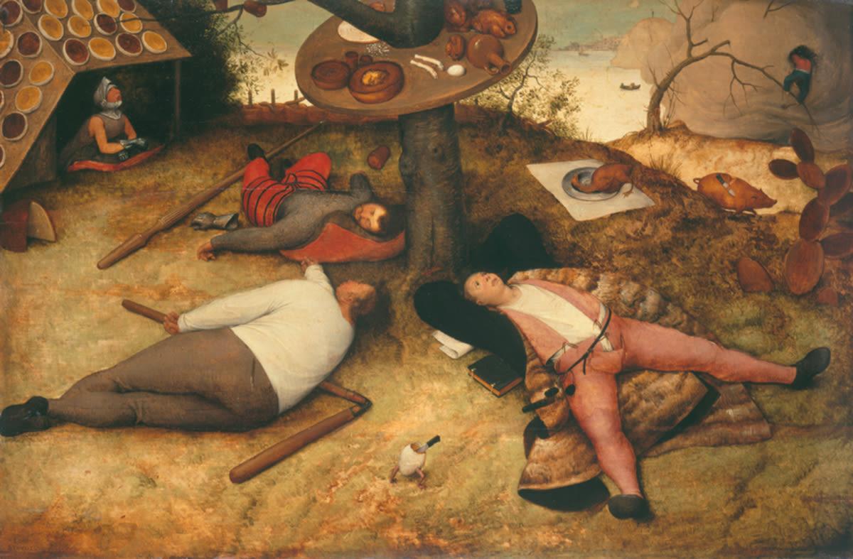 Pieter Bruegel, The Land of Cockaigne, 1567. Oil on panel. Alte Pinakothek, Munich, Photo: Alte Pinakothek, Munich, Germany / Bridgeman Images.