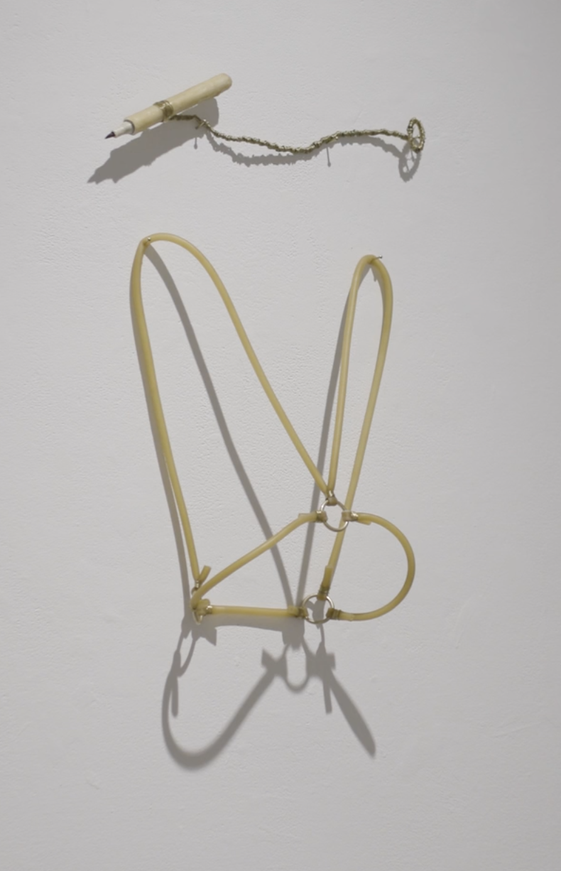 This connection did really surprise me. When I started refining my drawing tool you and several others mentioned that it seemed to reference kink, or that it looked like a bondage harness. I was also using latex surgical tubing because I love the colour of it, it was functional in it’s stretchy-ness, and a subtle reference back to medicine, but realized that latex is also a very common material used in kink garments.