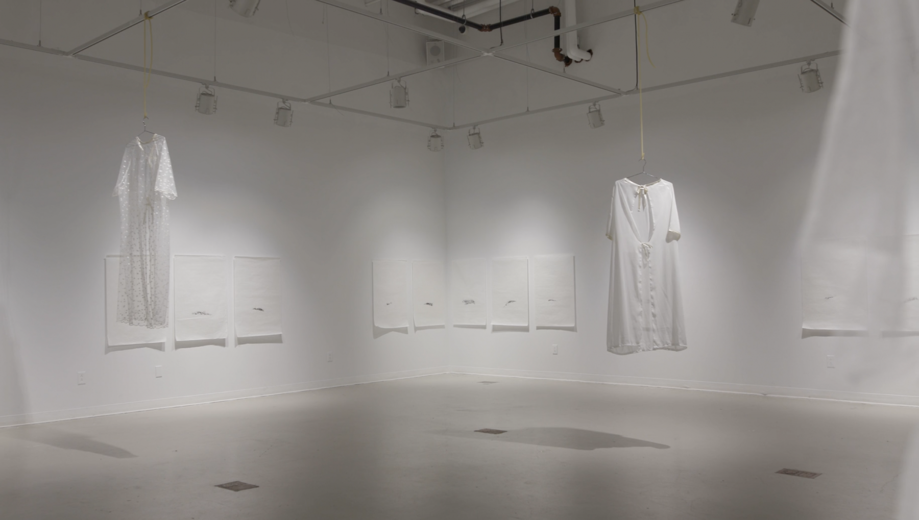 She is a retired general practitioner and she loves to quilt and sew—she used to make me costumes to play dress up in when I was a kid, and she’s made at least one quilt for all of her children and grandchildren. I stole a hospital gown from a recent MRI appointment on a whim and wasn’t really sure what I wanted to do with it—but after a while, I thought of her. I asked her to make a pattern out of the original gown and from there, make replicas in different sheer fabrics. I was thinking about different notions of care, and the tensions between them. Both in the medical acts of care and in the way I see her sewing: a means of expressing her love, a careful and tender act. This type of care in the traditional, and loving ways we understand it is so often overlooked—but has done so much more for me than any form of medical care (which is so directly focused on treatment or cure) has. I think it’s so powerful because it directly contrasts this idea that someone is trying to ‘fix’ you.