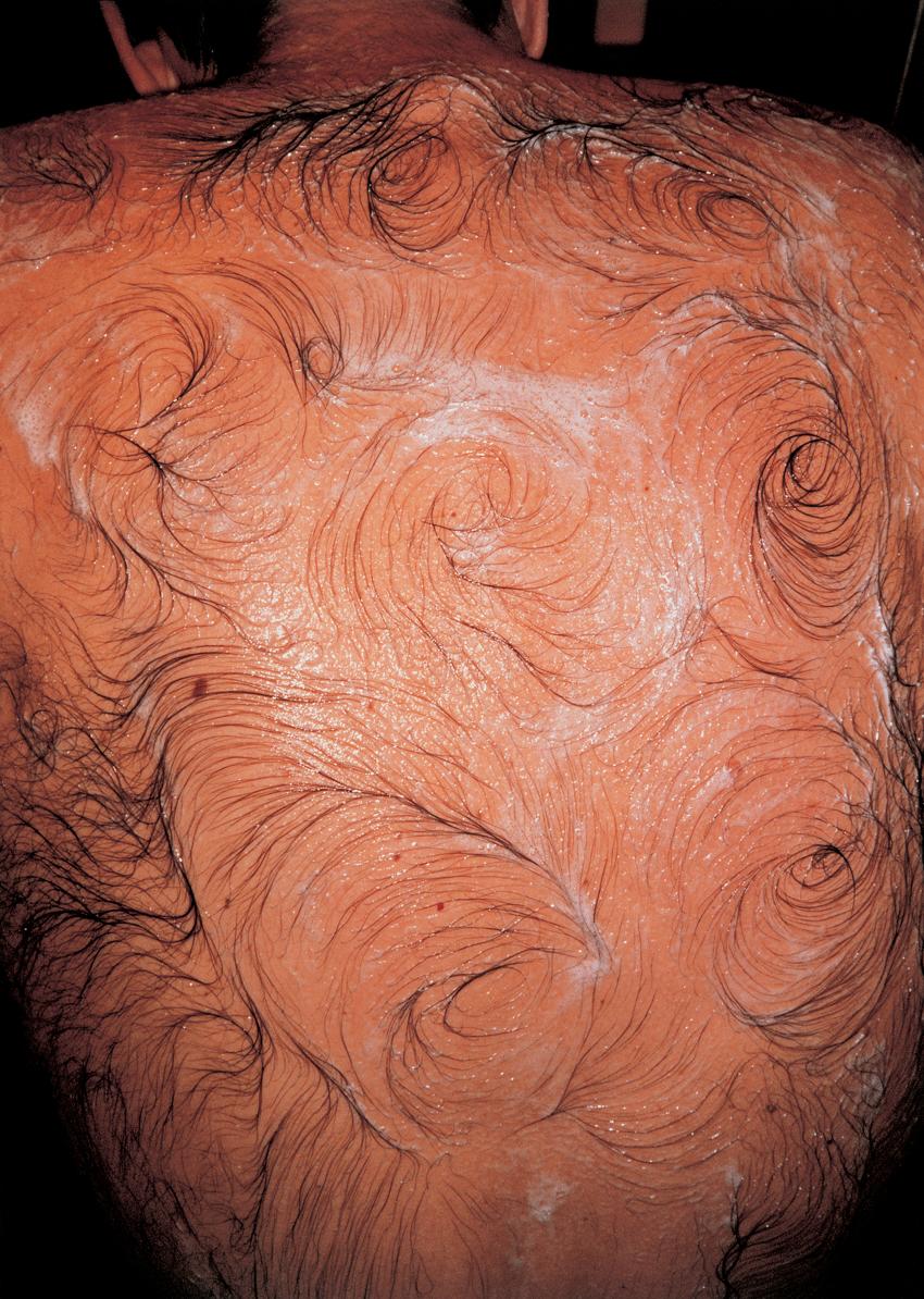 14—Mona Hatoum’s photograph, Van Gogh’s Back (1995), is a perfect example of an Emotionalist work. It’s critical and funny and sincere all at once: the photograph’s tight crop shows only a man’s back, slick with water and soap. His dark back hair is combed into swirling circles. Hatoum’s wonderfully corny title turns the man’s back into the starry night. It reminds me that the private world shared by two people can feel as expansive and complicated as the Milky Way, that god exists in all of us, and that the personal and the political are always intermingled.