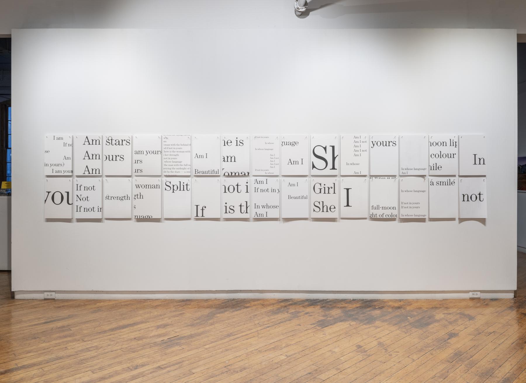 One of the things I learned when we talked about the space in Kingston is that we have to revise it, that it can't be the same as it was at Gallery 44. Early on at Modern Fuel, I was mourning the loss of the Gallery 44 space. But things shifted quickly when we—you, me, Maddi (Andrews, Executive Director of Modern Fuel) and Cristian—began to work with the new space. We needed to remake the path through the story we are telling. We had to reinterpret what the work sounds and looks like. In this way it is living, and I love that it's living. The most important thing to me that I've learned about Black geographies and theorising a Black sense of space is that geography is an activity rather than a stable location. If it's an activity, then as our curations and conversations about this poem fade they also renew. The other part of the story for me is the collaboration. I don't think I've ever worked with better people in my life. Putting this project together was so easy for me because I became “we.” I had a crew of cools. I'm so lucky. I've said this before: I'm so lucky with my friendships, and I'm so lucky that I've built new friendships with this project. I feel happy that I can be in conversation with people. And we're all, we all have our weird personalities and everything, but wow. You remember when Cristian showed us what the first exhibition design might look like? And we were all like, okay, that's great—fin! It was so beautiful. It was really beautiful. Beautiful. Yeah. Commitment is beautiful. So, I think the collaboration has been—also just, yeah. I just feel so lucky. I'm so lucky.