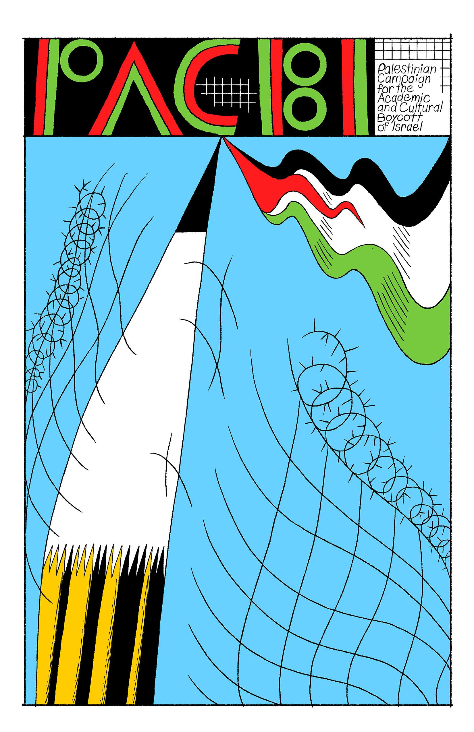 Cover for PACBI Writers Against the War on Gaza (WAWOG) explainer zine, 2024. Courtesy of the artist.