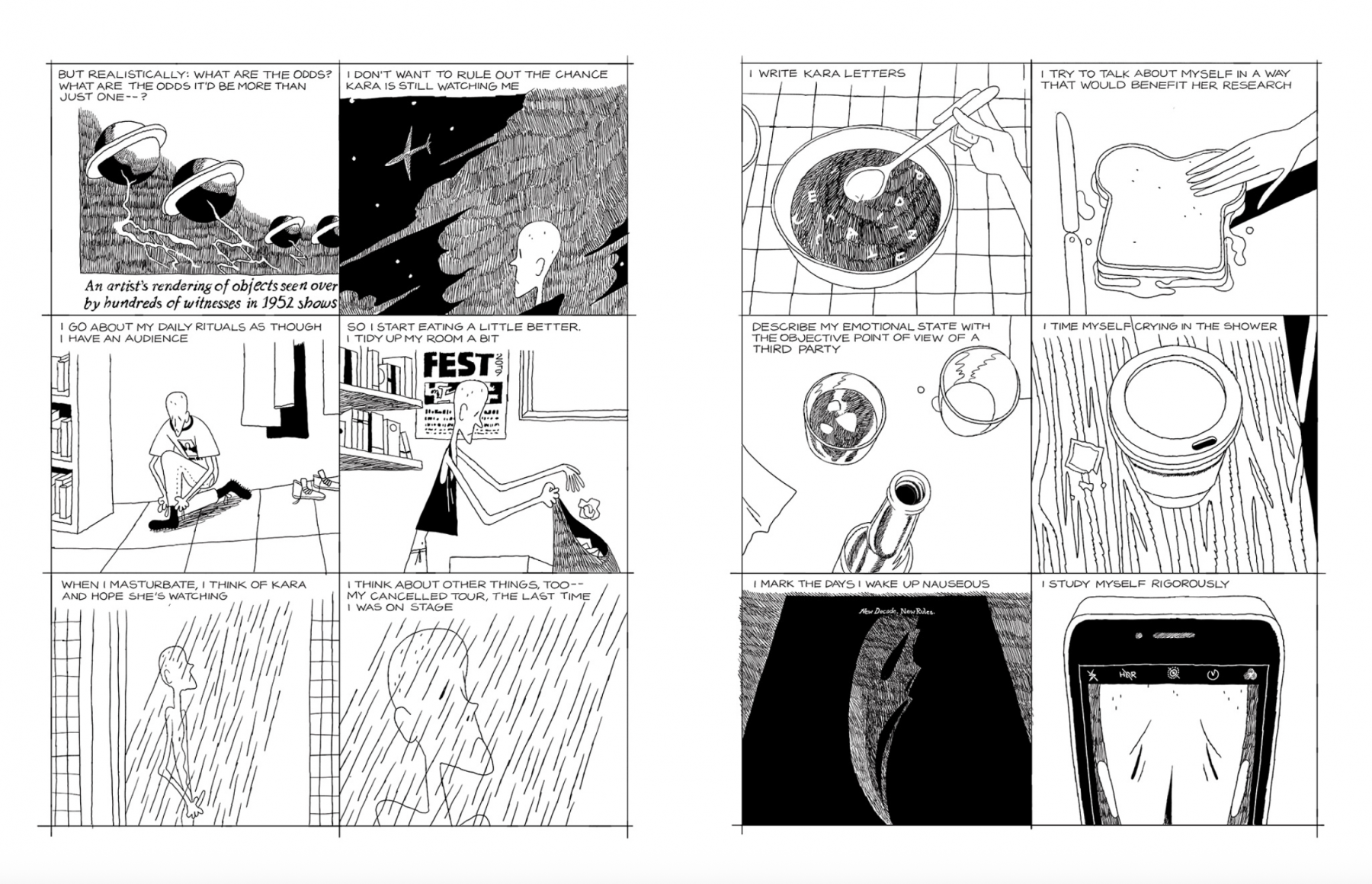 I really like Joe Sacco’s new book, The Once and Future Riot. It’s weird to say because Joe Sacco is so canonized and venerated and has cross-medium success, but I think he’s an author that the comics and literary world is starting to take for granted, just because he’s so consistently good. It’s just a really excellent piece of graphic reporting. The other day I saw The Gulf of Silence by Mina Rhodes, who I don’t know a lot about, but the movie is about someone’s experience seeing a UFO, and I was grateful that I saw it after I did my book because I think it would have influenced it. It’s excellent. A lot of it is about professional fallout from having this sighting and talking about it. And I’m on the third book of Peter Weiss’ Aesthetics of Resistance trilogy. They’re all very good, and it’s subject-matter that’s on my mind a lot. I sometimes feel ambivalent about the role art can have in resistance, and they’re novels that talk about potency versus the way art can be part of a containment strategy.