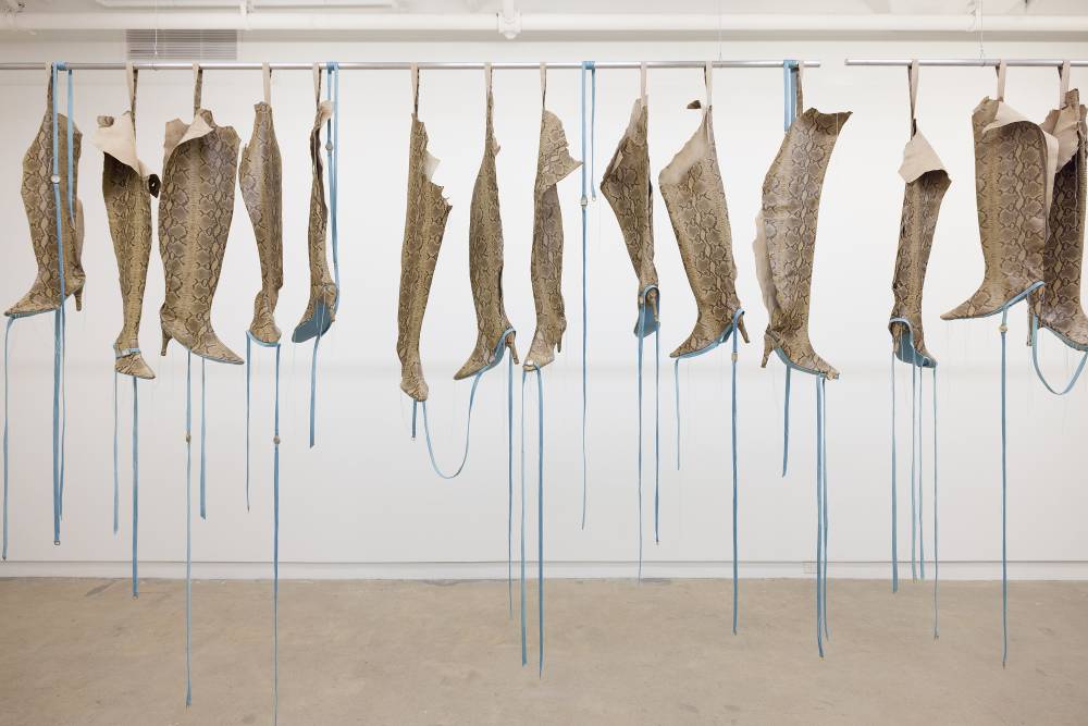 The day after the opening of her solo-exhibition, Primary Information, I met Julia Dault in the basement 'Bunker' at Bradley Ertaskiran—a space that she specifically requested for her third presentation at the gallery. There's a certain drama to the room, given the mass of concrete, visible rebar, ventilation ducts, and amalgam of building material that cover the walls, like mineral deposits from preceding epochs of use. There we sat, shoes off, cross-legged on the most uncannily-coloured carpeting I've ever seen—not quite sulphuric, nor mustard, but somewhere between the two on the binary of fertilizer and food.